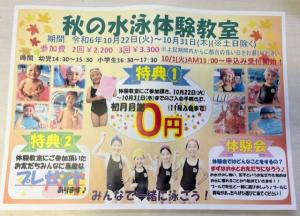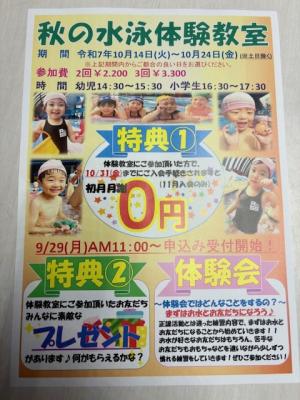 ★秋の水泳体験教室開催致します★