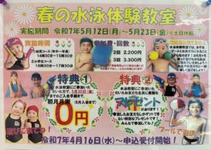 春の水泳体験教室を開催致します!!